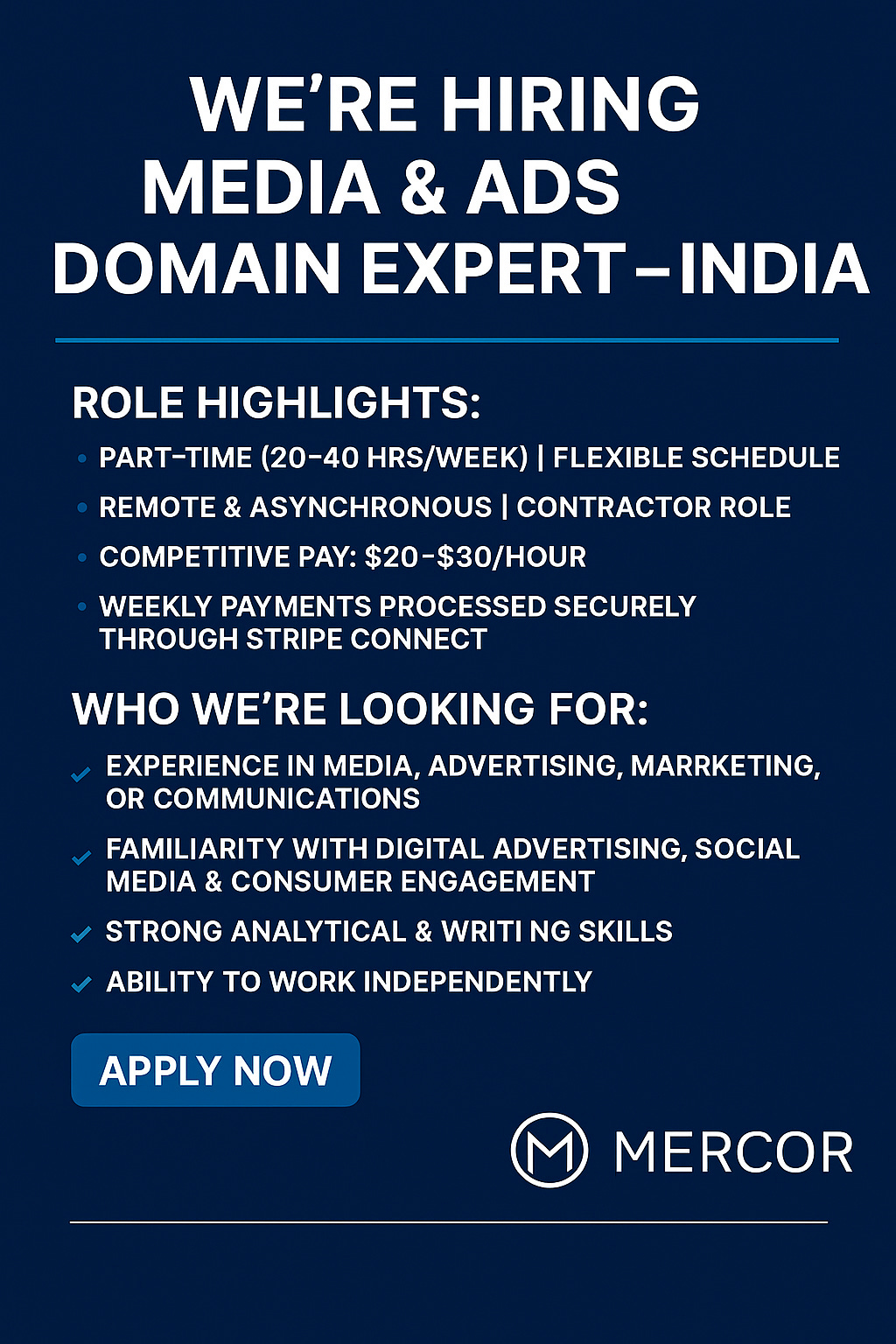 📢 We’re Hiring: Media & Ads Domain Expert – India