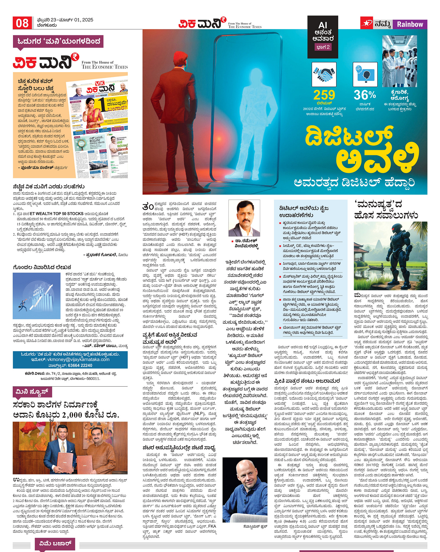 ಇತ್ತೀಚೆಗೆ ಬೆಂಗಳೂರಿನಲ್ಲಿ ನಡೆದ ಜಾಗತಿಕ ಹೂಡಿಕೆ ಸಮಾವೇಶದಲ್ಲಿ ಸಂದರ್ಶನದಲ್ಲಿ ಎಐ ಸಾಧ್ಯತೆಗಳ ಕುರಿತು ಮಾತನಾಡುತ್ತಿದ್ದ ‘ಗೂಗಲ್ ಎಕ್ಸ್’ ಲ್ಯಾಬ್ನ ಸ್ಥಾಪಕ ಸೆಬಾಸ್ಟಿಯನ್ ಥ್ರನ್, ‘ಸಾವಿನ ನಂತರವೂ ಮನುಷ್ಯ ಜೀವಿಸಬಹುದು’ ಎಂಬ ಅಚ್ಚರಿಯ ಹೇಳಿಕೆ ನೀಡಿದರು. ಆ ಮಾತಿನ ಒಳಹೊಕ್ಕು ನೋಡಿದಾಗ ಅವರು ಹೇಳಿದ್ದು ‘ಹ್ಯೂಮನ್ ಡಿಜಿಟಲ್ ಟ್ವಿನ್’ ಎಂಬ ತಂತ್ರಜ್ಞಾನದ ಕುರಿತು ಎಂಬುದು ತಿಳಿಯಿತು. ಅಮರತ್ವದ ಆಸೆ ಹುಟ್ಟಿಸುತ್ತಿರುವ ಈ ತಂತ್ರಜ್ಞಾನದ ಬಗ್ಗೆ ಈ ವಾರದ ಲೇಖನದಲ್ಲಿ ವಿವರಿಸಲಾಗಿದೆ. ಜೊತೆಗೆ, ಸಾವಿನ ನಂತವೂ ಮನುಷ್ಯ ಡಿಜಿಟಲ್ ಜಗತ್ತಿನಲ್ಲಿ ‘ಜೀವಿಸುವುದನ್ನು’ ಈ ತಂತ್ರಜ್ಞಾನ ಸಾಧ್ಯವಾಗಿಸುವುದು ಹೇಗೆ ಎಂಬುದನ್ನು ಇಲ್ಲಿ ಚರ್ಚಿಸಲಾಗಿದೆ.