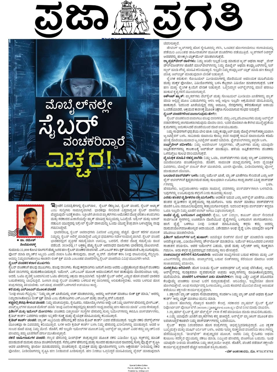 ಇತ್ತೀಚೆಗೆ ದಿನಪತ್ರಿಕೆಗಳಲ್ಲಿ ಸೈಬರ್ದಾಳಿ, ಸೈಬರ್ ಸೆಕ್ಯೂರಿಟಿ, ಸೈಬರ್ ವಂಚನೆ, ಸೈಬರ್ ಅಟ್ಯಾಕ್ ಎಂಬ ಸುದ್ದಿಗಳು ಸಾಮಾನ್ಯವಾಗಿವೆ. ಭಾರತವೂ ಸೇರಿದಂತೆ ವಿಶ್ವದಾದ್ಯಂತ ಸೈಬರ್ ದಾಳಿಗಳು ಹೆಚ್ಚಿರುವುದೇ ಇದಕ್ಕೆ ಕಾರಣ. ಇತ್ತೀಚೆಗೆ ಚೀನಾದ ಹ್ಯಾಕರ್ಗಳು ಅಮೆರಿಕದ ದೊಡ್ಡ ಟೆಲಿಕಾಂ ಕಂಪನಿಗಳು ಮತ್ತು ಸರಕಾರದ ಖಜಾನೆಯನ್ನೇ ಹ್ಯಾಕ್ ಮಾಡಿದ್ದ ಸುದ್ದಿಯನ್ನು ಓದಿದ್ದೇವೆ. ಇಸ್ರೇಲ್ ಮತ್ತು ಇರಾನ್ ನಡುವಿನ ಯುದ್ಧದಲ್ಲಿ ಇಸ್ರೇಲ್ ಸೈಬರ್ ದಾಳಿಯನ್ನು ಒಂದು ಯುದ್ಧ ತಂತ್ರವಾಗಿ ಬಳಸಿದ್ದನ್ನೂ ನಾವು ಗಮನಿಸಿದ್ದೇವೆ.