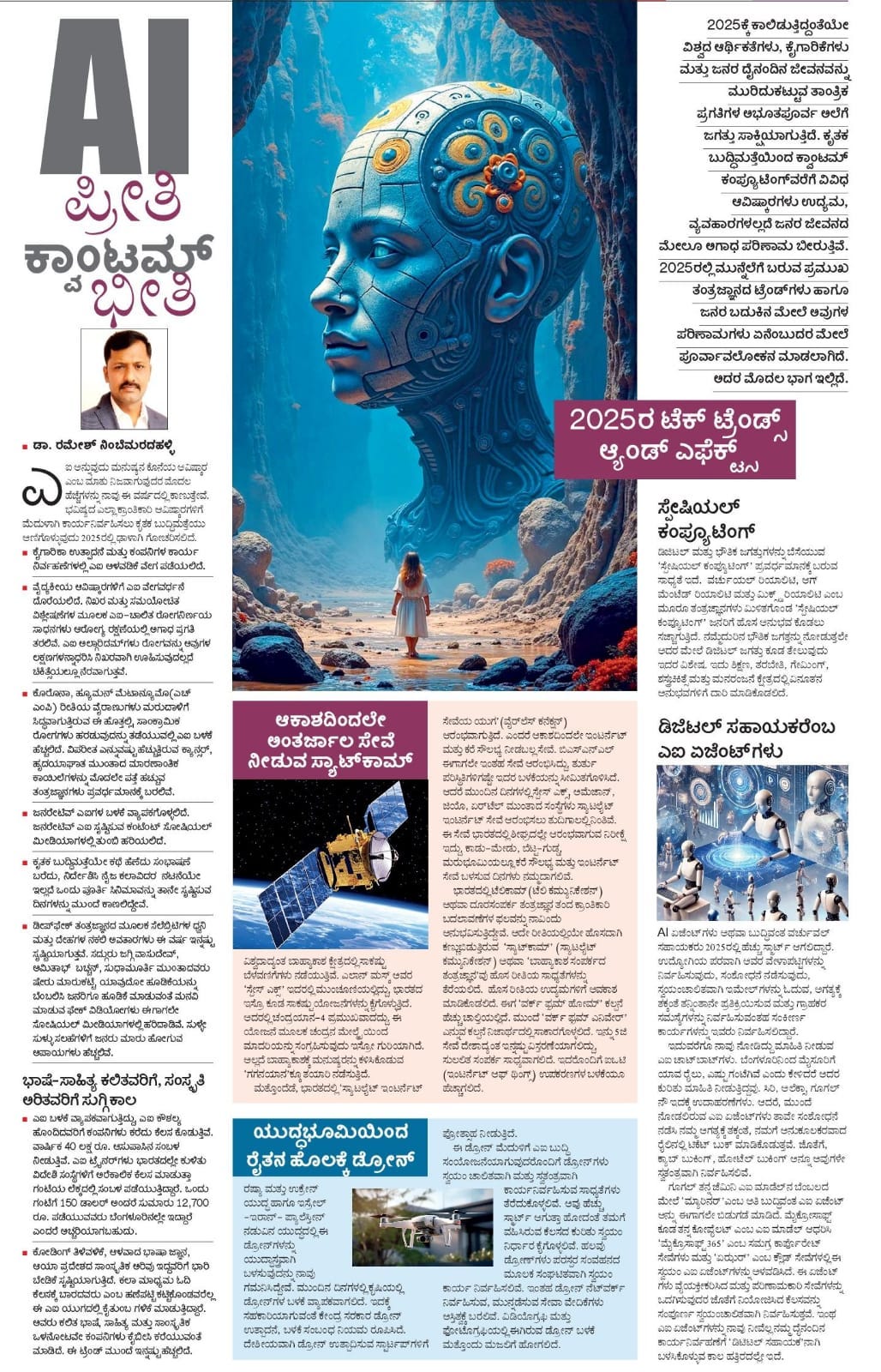 2025 ಕ್ಕೆ ಕಾಲಿಡುತ್ತಿದ್ದಂತೆ ವಿಶ್ವದ ಆರ್ಥಿಕತೆಗಳು, ಕೈಗಾರಿಕೆಗಳು, ಮತ್ತು ಜನರ ದೈನಂದಿನ ಜೀವನವನ್ನು ಮುರಿದುಕಟ್ಟುವ ತಾಂತ್ರಿಕ ಪ್ರಗತಿಗಳ ಅಭೂತಪೂರ್ವ ಅಲೆಗೆ ಜಗತ್ತು ಸಾಕ್ಷಿಯಾಗುತ್ತಿದೆ. ಕೃತಕ ಬುದ್ಧಿಮತ್ತೆಯಿಂದ ಕ್ವಾಂಟಮ್ ಕಂಪ್ಯೂಟಿಂಗ್ವರೆಗೆ ವಿವಿಧ ಆವಿಷ್ಕಾರಗಳು ಉದ್ಯಮ, ವ್ಯವಹಾರಗಳಲ್ಲದೆ ಜನರ ಜೀವನದ ಮೇಲೂ ಅಗಾಧ ಪರಿಣಾಮ ಬೀರುತ್ತಿವೆ. 2025 ರಲ್ಲಿ ಮುನ್ನೆಲೆಗೆ ಬರುವ ಪ್ರಮುಖ ತಂತ್ರಜ್ಞಾನದ ಟ್ರೆಂಡ್ಗಳು ಹಾಗೂ ಜನರ ಬದುಕಿನ ಮೇಲೆ ಅವುಗಳ ಪರಿಣಾಮಗಳು ಏನೆಂಬುದರ ಮೇಲೆ ಪೂರ್ವಾವಲೋಕನ ಮಾಡಲಾಗಿದೆ. ಅದರ ಮೊದಲ ಭಾಗವನ್ನು ನೀಡಲಾಗಿದೆ.