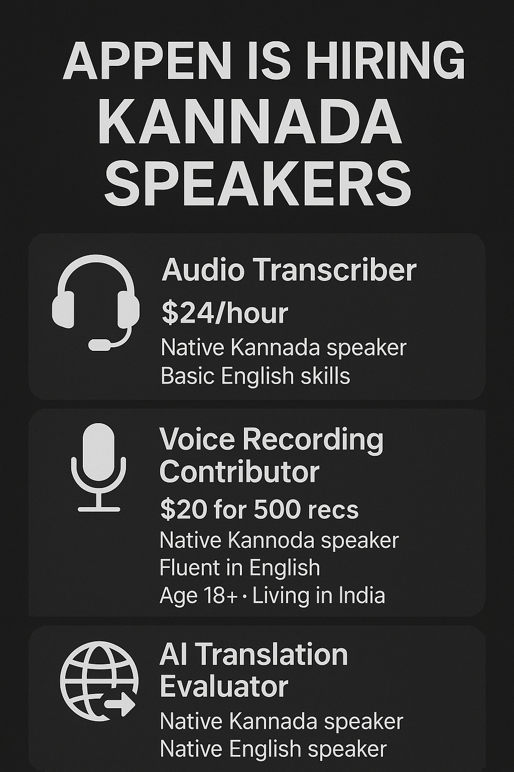 📌 Native in Kannada & English, laptop + internet, translation experience preferred