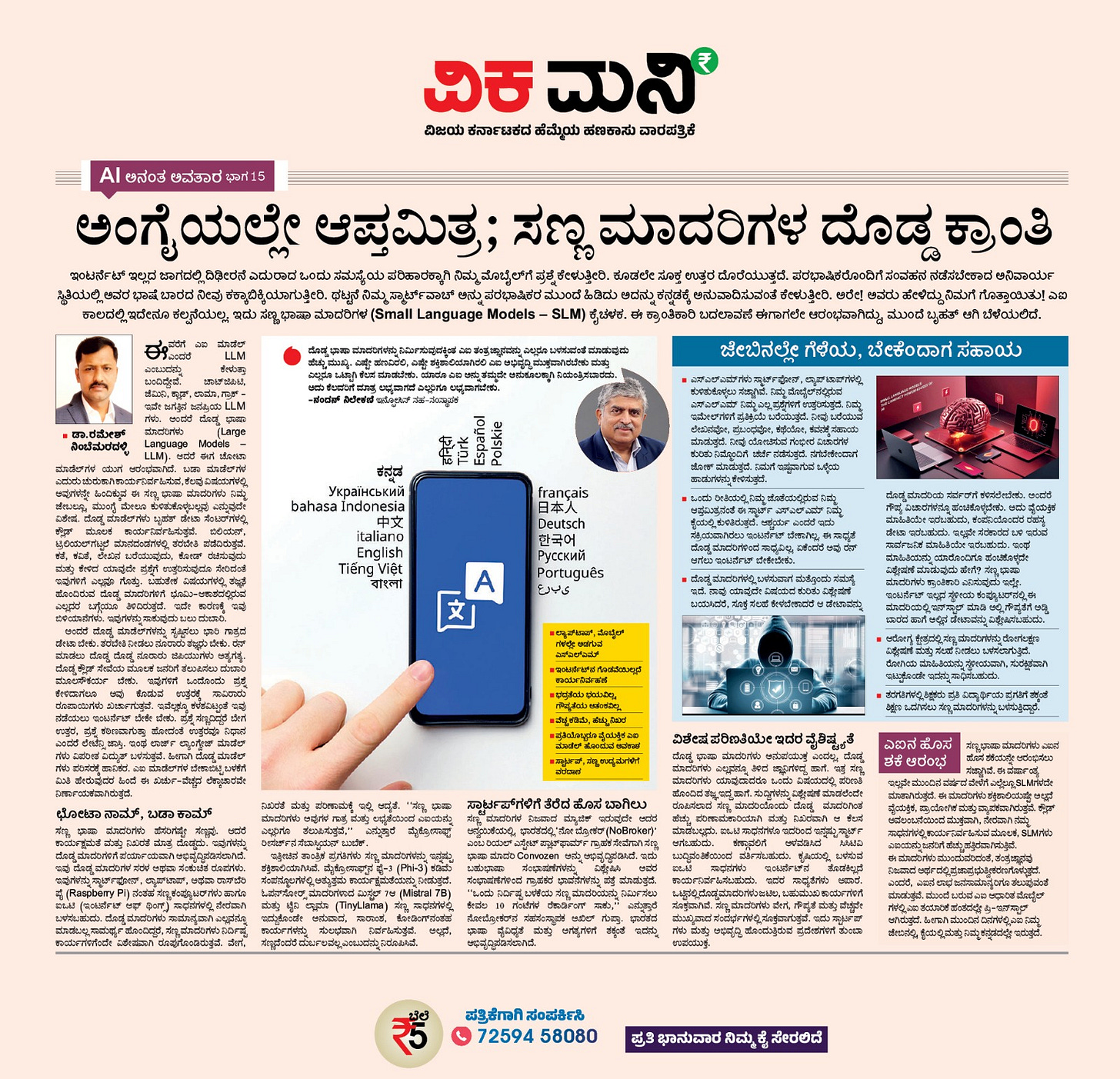 ಇಂಟರ್ನೆಟ್ ಇಲ್ಲದ ಜಾಗದಲ್ಲಿ ದಿಢೀರನೆ ನಿಮಗೆದುರಾದ ಒಂದು ಸಮಸ್ಯೆಗೆ ಪರಿಹಾರಕ್ಕಾಗಿ ನಿಮ್ಮ ಮೊಬೈಲ್ಗೆ ಪ್ರಶ್ನೆ ಕೇಳುತ್ತೀರಿ. ನಿಮಗೆ ಕೂಡಲೇ ಸೂಕ್ತ ಉತ್ತರ ದೊರೆಯುತ್ತದೆ. ಪರಭಾಷಿಕರೊಂದಿಗೆ ಸಂವಹನ ನಡೆಸಬೇಕಾದ ಅನಿವಾರ್ಯ ಸ್ಥಿತಿಯಲ್ಲಿ ಅವರ ಭಾಷೆ ಬಾರದ ನೀವು ಕಕ್ಕಾಬಿಕ್ಕಿಯಾಗುತ್ತೀರಿ. ಥಟ್ಟನೆ ನಿಮ್ಮ ಸ್ಮಾರ್ಟ್ವಾಚ್ ಅನ್ನು ಪರಿಭಾಷಿಕರ ಮುಂದೆ ಹಿಡಿದು ಅದನ್ನು ಕನ್ನಡಕ್ಕೆ ಅನುವಾದಿಸುವಂತೆ ಕೇಳುತ್ತೀರಿ. ಅರೇ! ಅವರು ಹೇಳಿದ್ದು ನಿಮಗೆ ಗೊತ್ತಾಯಿತು. ಎಐ ಕಾಲದಲ್ಲಿ ಇದೇನೂ ಕಲ್ಪನೆಯಲ್ಲ. ಇದು ಸಣ್ಣ ಭಾಷಾ ಮಾದರಿಗಳ (ಸ್ಮಾಲ್ ಲ್ಯಾಂಗ್ವೇಜ್ ಮಾಡೆಲ್ – SLM) ಕೈಚಳಕ. ಈ ಕ್ರಾಂತಿಕಾರಿ ಬದಲಾವಣೆ ಈಗಾಗಲೇ ಆರಂಭವಾಗಿದ್ದು, ಮುಂದೆ ಬೃಹತ್ ಆಗಿ ಬೆಳೆಯಲಿದೆ.